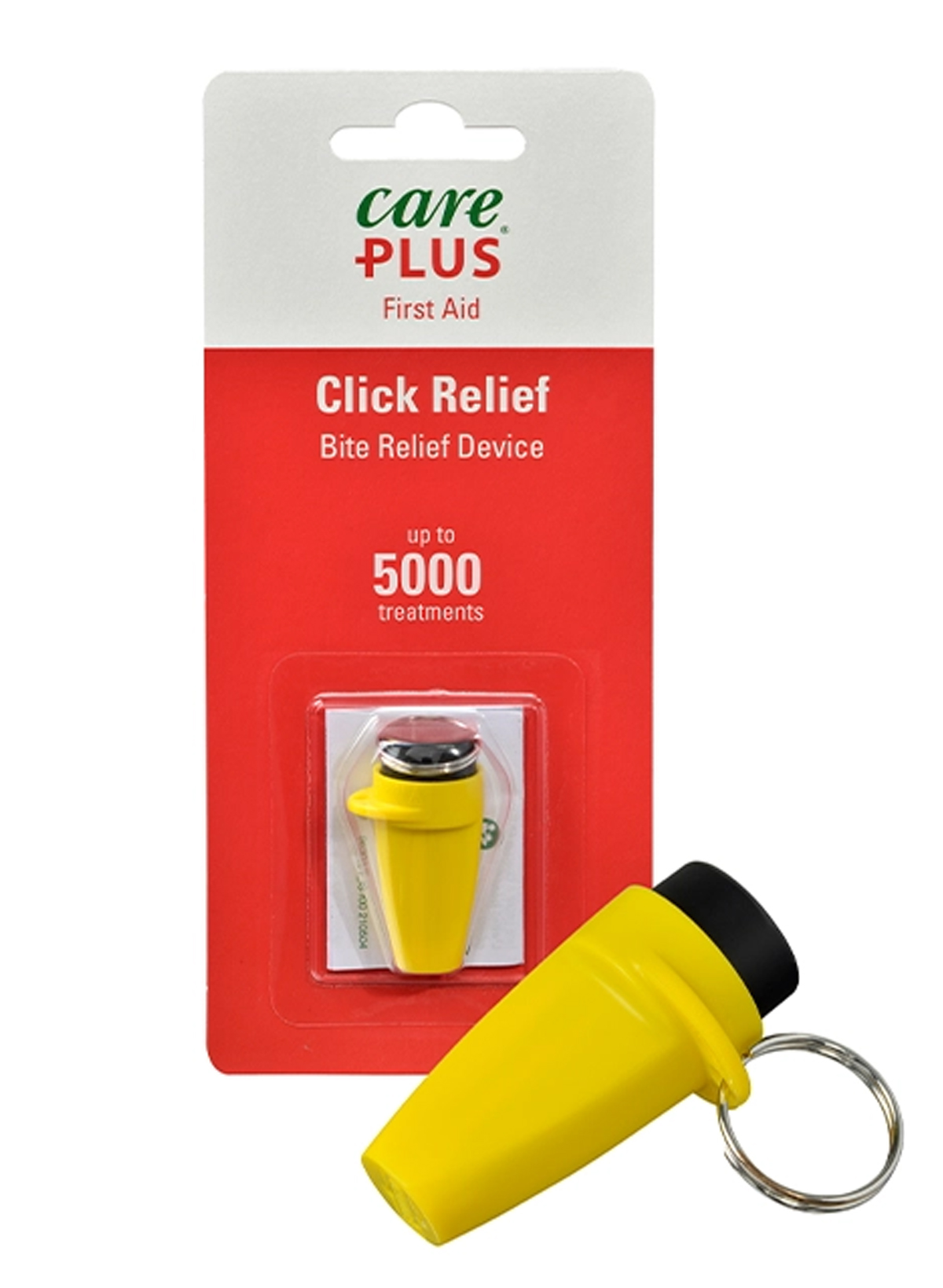 Care Plus Click-Relief lindrer hævelse, rødme, irritation og kløe forårsaget af insektbid. Denne praktiske enhed kan reducere kløe og hævelse efter myggestik eller stik fra hvepse eller bier. Virker inden for få minutter.