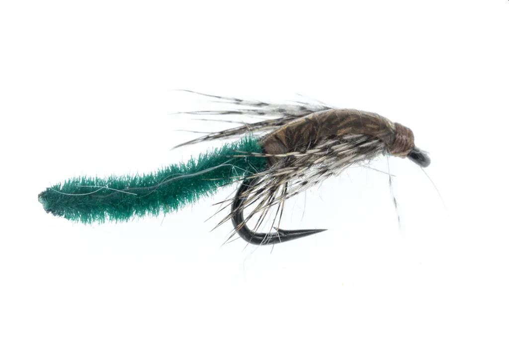 Chenille Pupa Caddis Green #14 er en let tørflue, der er specielt designet til fluefiskeri i strømvand. Denne flue er et af de mest populære valg til august måneds caddis-klækninger, som giver ørredfiskere uforglemmelige øjeblikke. Selvom nye konkurrencefiskeregler begrænser brugen af udstikkende materialer som chenille, tilbyder Chenille Pupa en realistisk og effektiv måde at fiske på i nordlige caddis-vandløb for andre fiskere. Fluen er bundet på en kvalitets Ahrex FW540 krog, hvilket sikrer dens holdbarhed og funktionalitet.