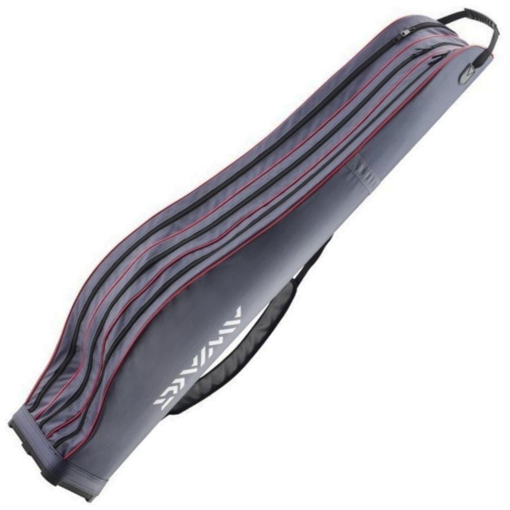 Daiwa Rod Case Triple er en holdbar transporttaske til fiskestænger med tre rum, designet specielt til rejsende lystfiskere, der har flere stænger med sig. Tasken har robuste og stærke lynlåse, et bærehåndtag og en skulderrem, hvilket gør den nem og behagelig at transportere.