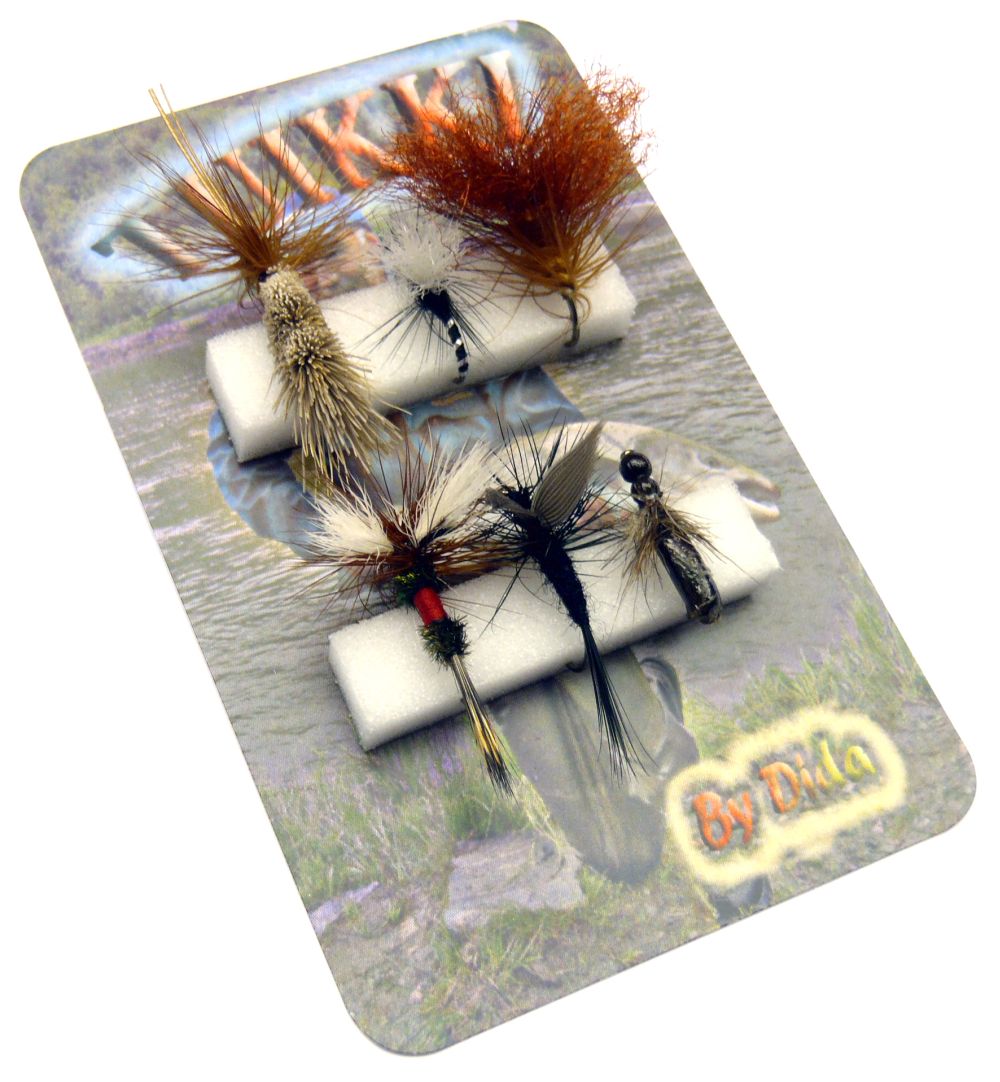 Dida Tuikki Pinturi fluesæt er designet specielt til overfladefiskeri. Dette sæt indeholder seks forskellige overfladefluer, der er beregnet til at tiltrække fisk fra vandoverfladen. Fluerne er velegnede til brug i både stillestående og strømmende vand, hvilket gør dem til et alsidigt valg for fiskere, der ønsker at fiske med overfladeteknikker.