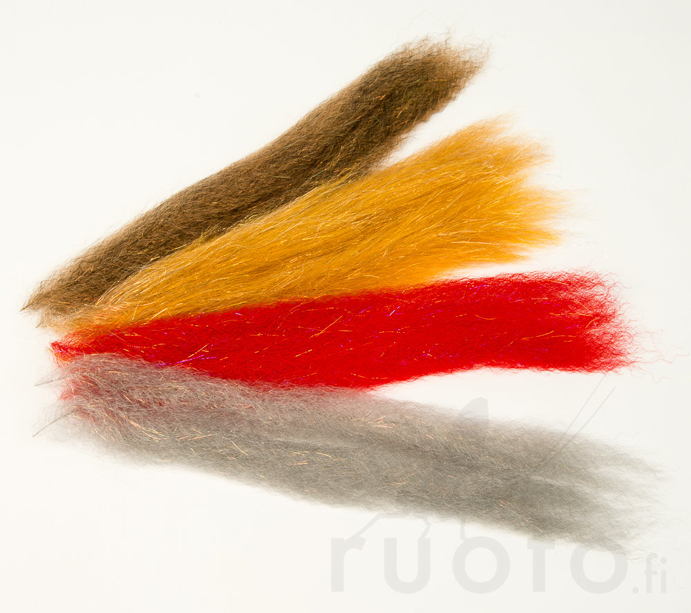 Brushen bruges ved at vikle den rundt om krogen som en hackle, hvilket skaber en luftig og bærende krop eller hoved til store streamere. Fibrenes længde er ca. 5 cm, og pakken indeholder to brushes, hver ca. 25 cm lange.