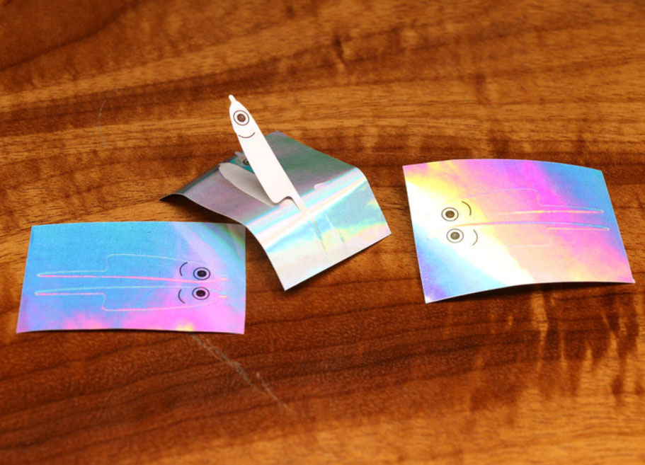 Popovics Fleye Foils Silversides -klisterfolier leveres i pakker med 10 par og fås i tre størrelser: Small, Medium og Large.