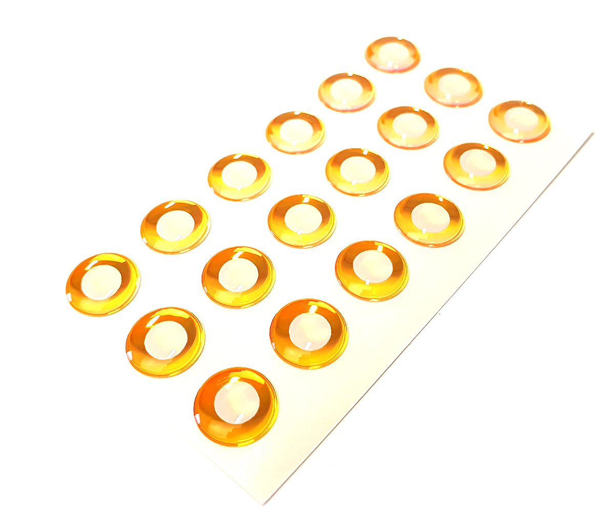 Fly-Dressing Epoxy Eyes 11mm -klisterøjne er højkvalitets epokseøjne, der er specielt designet til fluebinding. De fås i flere forskellige farver, såsom sølv, fluorescerende rød, fluorescerende gul og selvlysende. Klisterøjnene er 11 mm i størrelse, og der er 18 stykker i pakken. De er særligt velegnede til rovfiskefluer og er nemme at fastgøre til fluerne takket være klisterfladen.