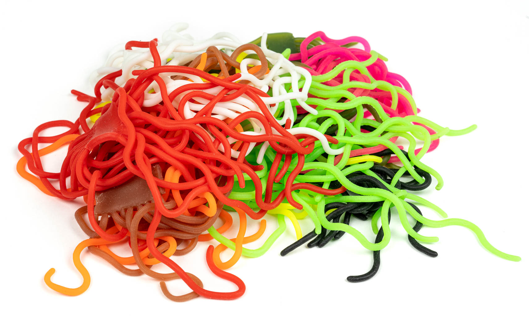 Grimman Squirmy Worm Body er et syntetisk blødt og livligt materiale, der er fremstillet af elastisk silikone. Det er udviklet til fluebinding, der efterligner forskellige orme, og er blevet kendt fra Squirmy Wormy-fluen. Specielt i konkurrencefiskekredse har denne type materialer bevist deres effektivitet mange gange. I sin enkleste form bindes et stykke Worm Body fast midt på krogen, og denne flue fiskes derefter frit med strømmen. Med små ryk kan man give ekstra liv til fluen, og materialet fungerer også i stillestående vand. Vi anbefaler at prøve det til både tarpon, havørred og aborre. Materialet bevæger sig fint selv ved små ryk og virker tilsyneladende interessant for fisken at bide i.