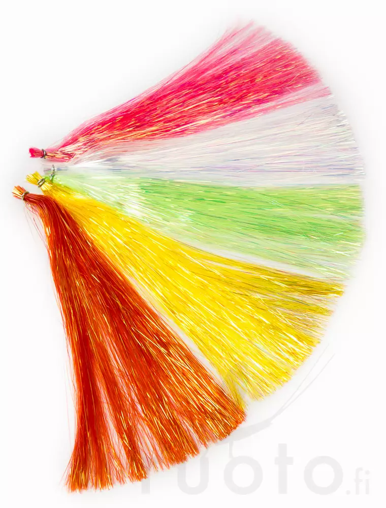 Originale Hedron Flashabou anses stadig af mange for at være den bedste glitterfiber. Standardet, som andre producenters produkter sammenlignes med. Glitterfiberen er meget blød, så bevægelse overføres til fibrene selv ved den mindste vandbevægelse. Posen indeholder cirka 1700 Hedron Flashabou-fibre, der er cirka 25 cm lange.
