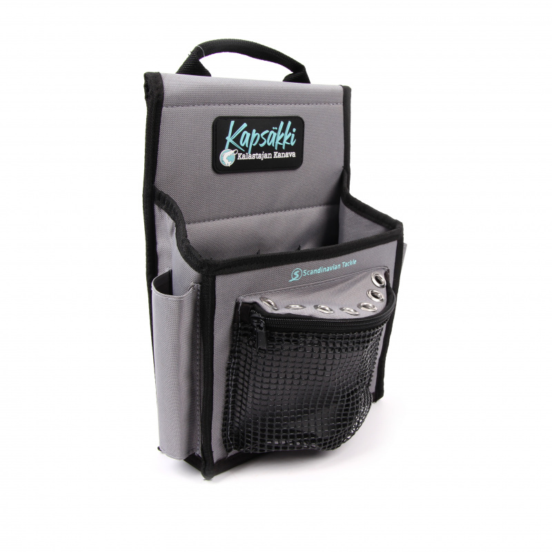 Fiskerens Kanal Kapsæk - holder fiskerens nødvendige redskaber i båden altid inden for rækkevidde. Kapsækken er en praktisk taske til fiskerens udstyr. Kapsækken fungerer fremragende, når man fisker fra båden. På taskens bagside er der en velcrolukning, som gør det muligt at fastgøre den til bådens ræling eller kant. Læg de vigtigste værktøjer i taskens små lommer, de større i hovedlommen og de specielle i netlommen. Når du er færdig med at fiske, kan tasken nemt tages med takket være den praktiske velcrolukning. Materialer: 1000D og 600D polyester. Ringene er af rustfrit stål.