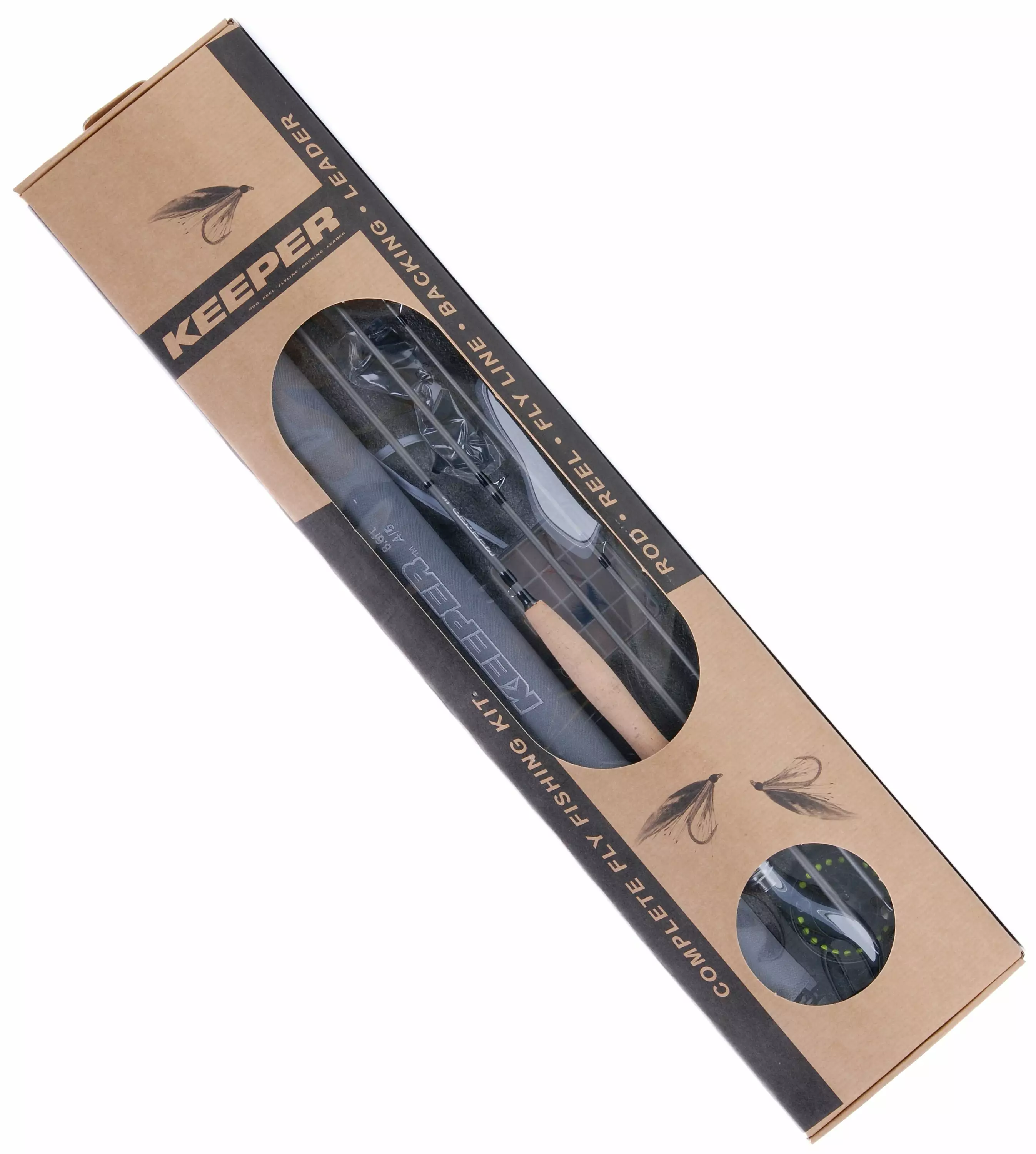 Keeper Complete Fly Fishing Kit -fluefiskesættet har en 9-fods stang, der er klassificeret som #5-6 og er velegnet til traditionelt åfiskeri efter ørred, stalling og regnbueørred.