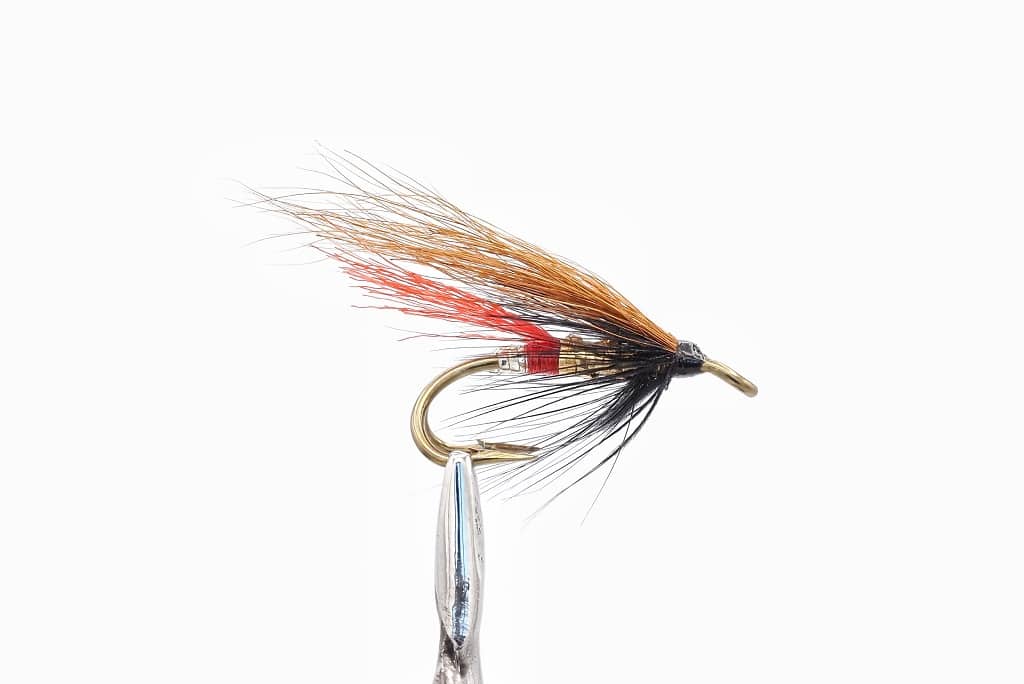 Guldsigd Double - lakseflue er designet specielt til laksefiskeri, og dens unikke design gør den til et effektivt valg. Denne flue er særligt effektiv i nordlige vande, og den er en sjælden fund i laksefiskerens æske, hvilket gør den mindre kendt for laksene.