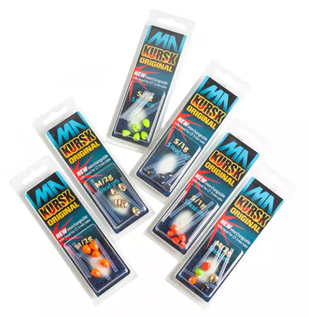 MA Kursk Heads 2G er et vægtet hoved lavet af wolfram, designet til brug med rørfluer. Vægten er 2 gram, hvilket muliggør hurtig nedsynkning af fluen i dybt vand. Pakken indeholder fem vægtede hoveder samt kompatible 3 mm rør. Dette produkt er specielt udviklet til fiskere, der har brug for effektive og hurtigt synkende fluer til dybvandsfiskeri.