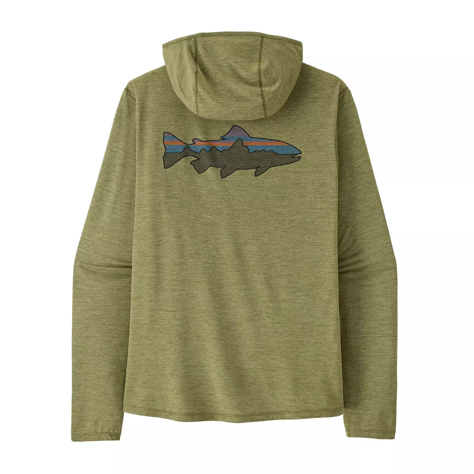 Patagonia M's Cap Cool Sun Hoody - Fitz Roy Trout Canyon Brown – Denne tekniske hættetrøje er designet til at give fremragende solbeskyttelse og komfort til aktivt udendørsliv. Fremstillet af 100 % genanvendt polyester, er denne hættetrøje let, åndbar og hurtigtørrende.