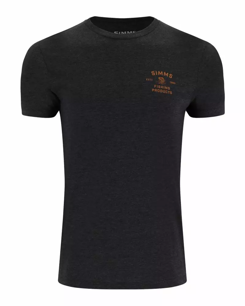 Simms Stacked Bass T-Shirt Charcoal Heather t-shirt kombinerer et stilfuldt look med komfort, der passer både til hverdagen og fritiden.