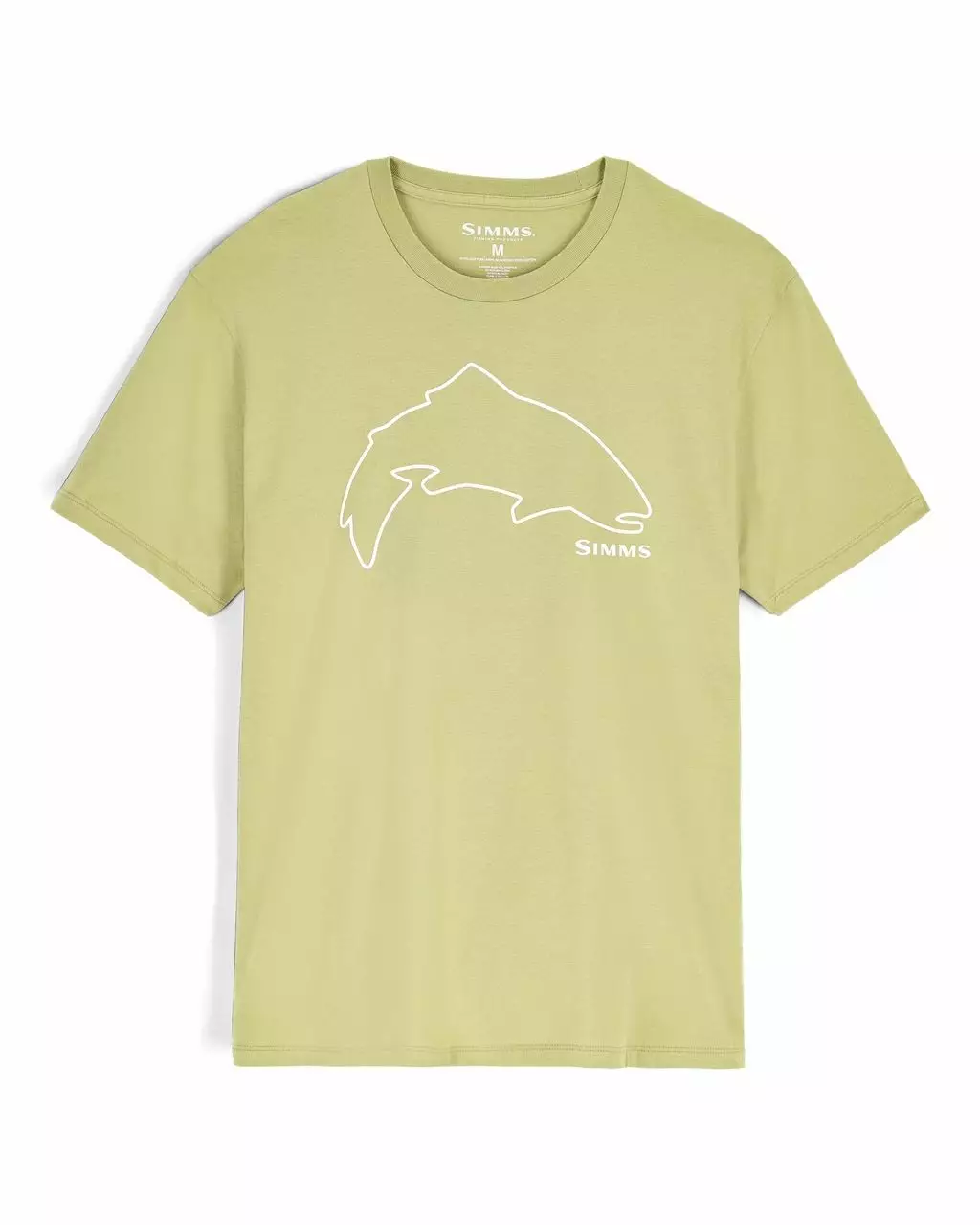 Simms Trout Outline T-Shirt Tent Green er en brugervenlig og komfortabel t-shirt i bomuldsblanding, der passer perfekt til fiskeri og fritid.