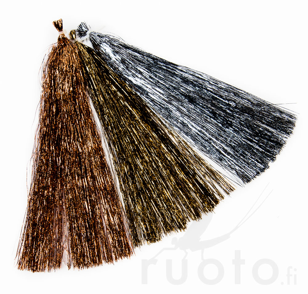 Speckled Flash er et plettet glimmermateriale, hvor pletterne skaber en illusion af bevægelse. Hedrons glimmermateriale er meget blødt og bevæger sig lokkende med selv den mindste vandbevægelse. Glimmeret er bredt nok til, at det ikke bliver filtret, selv i en lang vinge.
