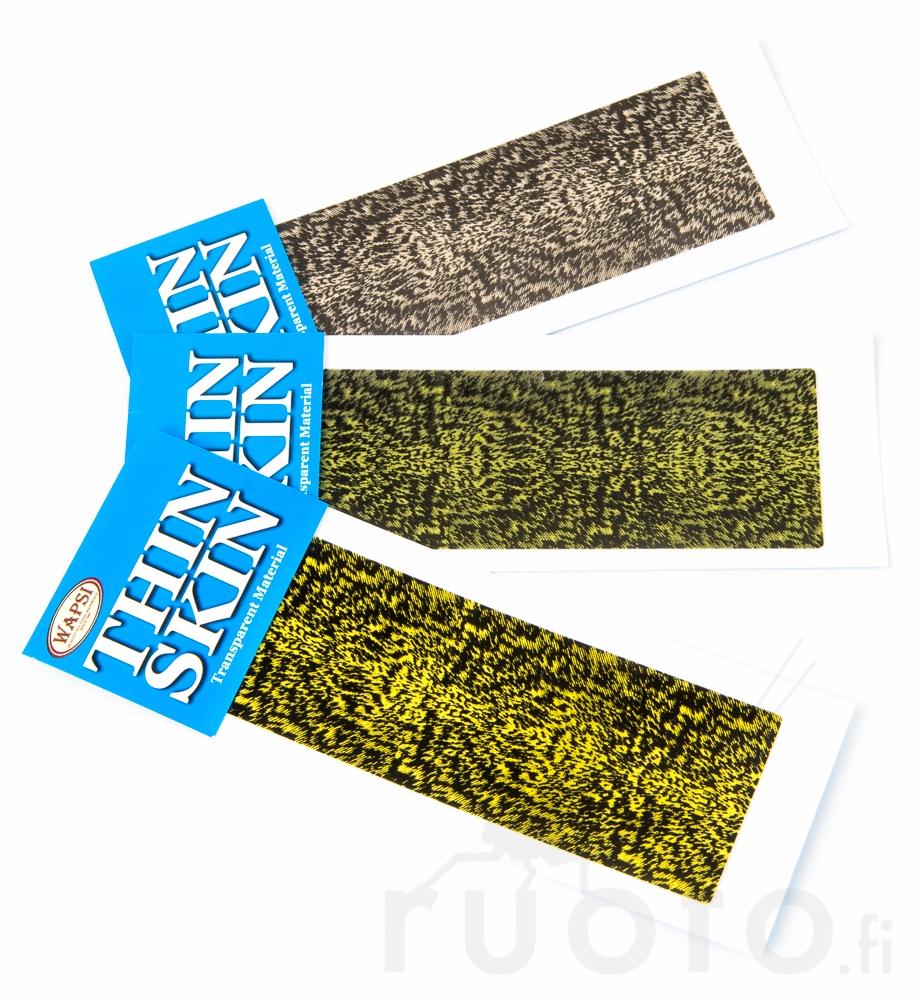 Wapsi Thin Skin er et alsidigt materiale til forskellige insektimitationers rygskjolde og vingeemner. Materialet er gennemsigtigt, tyndt og elastisk film, som er let at skære og anvende.