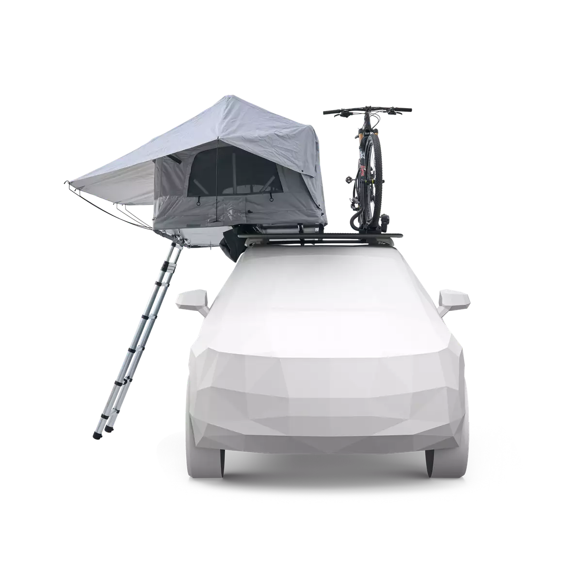Thule Foothill Ashland Grey – en kompakt og rummelig tagtelt til to voksne, designet til aktive eventyr. Teltets foldbare design efterlader plads på taget til andet udstyr som cykler eller kajakker.