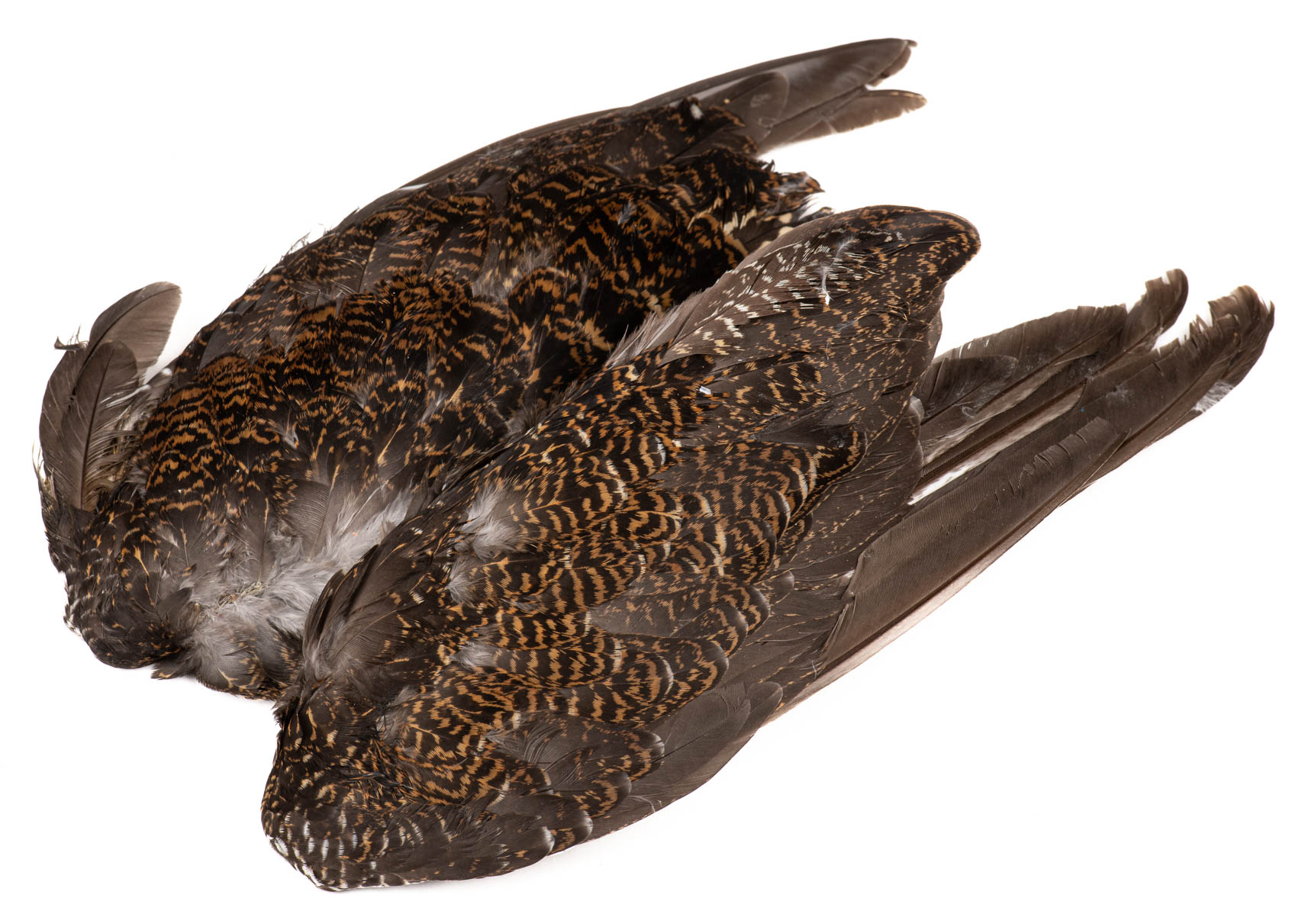 Veniard Grouse Wings fra rypevinger giver naturlige farvede hackler til vådfluer og laksefluer. Når de er strippet, er de velegnede som ben til nymfer. Fra vingefjerene binder man vinger til klassiske tør- og vådfluer.
