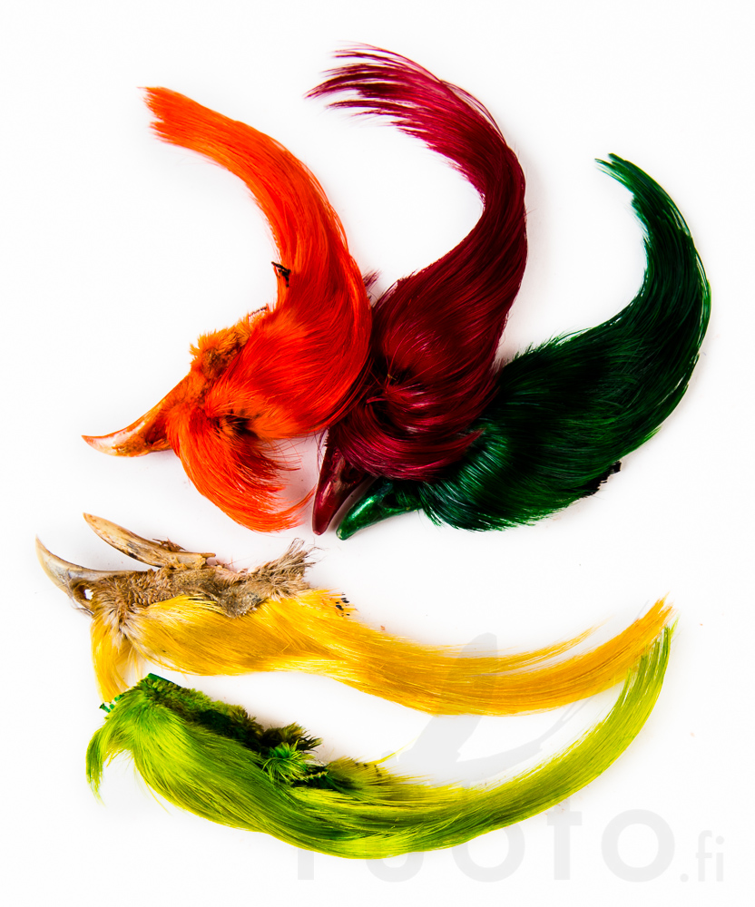Golden Pheasant Crest gyldne fasan kam bruges til at binde lakse- og vådfluehaler samt til dækning af klassiske laksefluer.