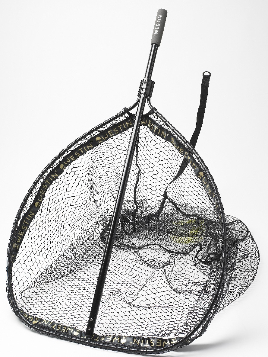 Westin W3 Catch & Release Landing Nets. Knudefrit gumminet beskytter fiskens slimlag og reducerer også risikoen for, at kroge sætter sig fast i nettet. Håndtaget på nettet har en laserindgraveret måleskala, der gør det meget nemmere at måle fisken. Nettet har en pålidelig dobbeltlås, når det er åbent, samt en lås, når det er lukket, hvilket gør det lettere at transportere. XXL-nettet har en rem, der gør det lettere at håndtere nettet uden rod.