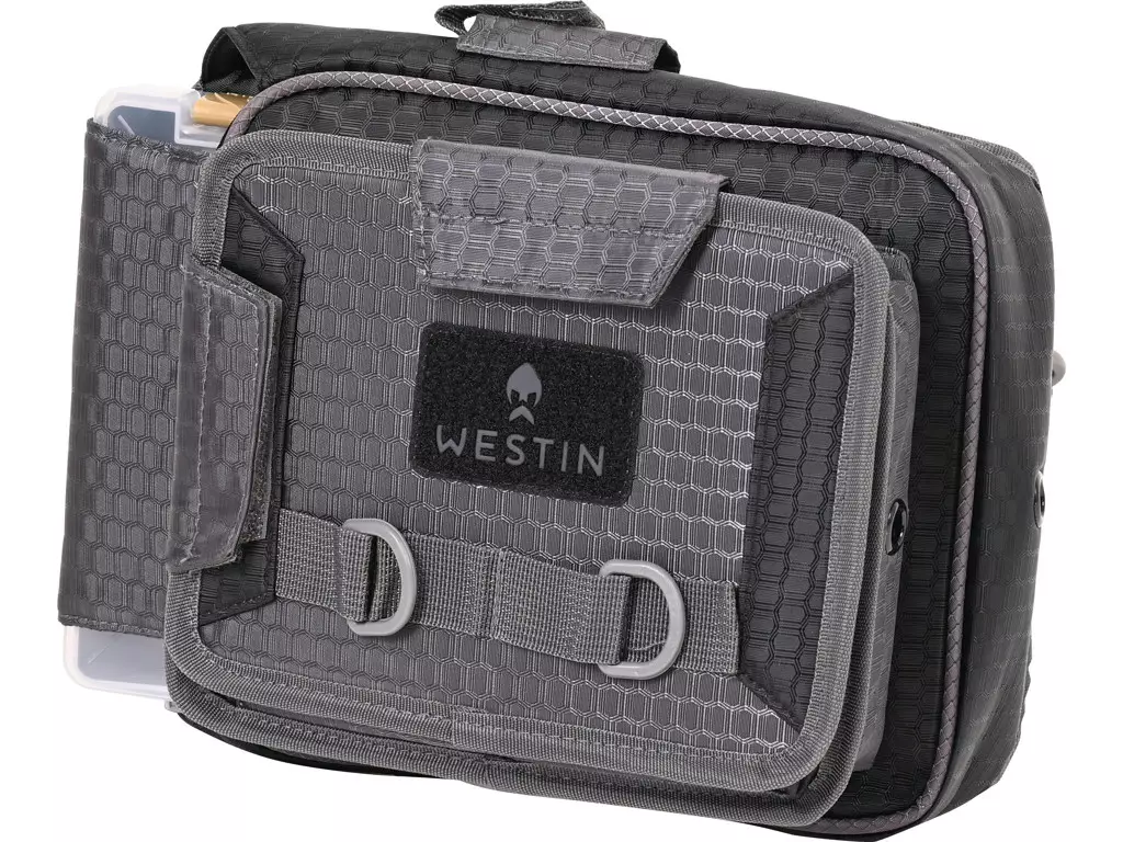 W4 Quick Bag 2 Boxes Small Titanium Black er en taske fra Westin, designet til opbevaring af agn. Tasken indeholder to af Westins egne bokse, som måler 27,5x18,5x4,5 cm og 20x14x4 cm. Taskens materiale er polyester, der er belagt med et vandafvisende materiale, hvilket gør den velegnet til udendørs brug.