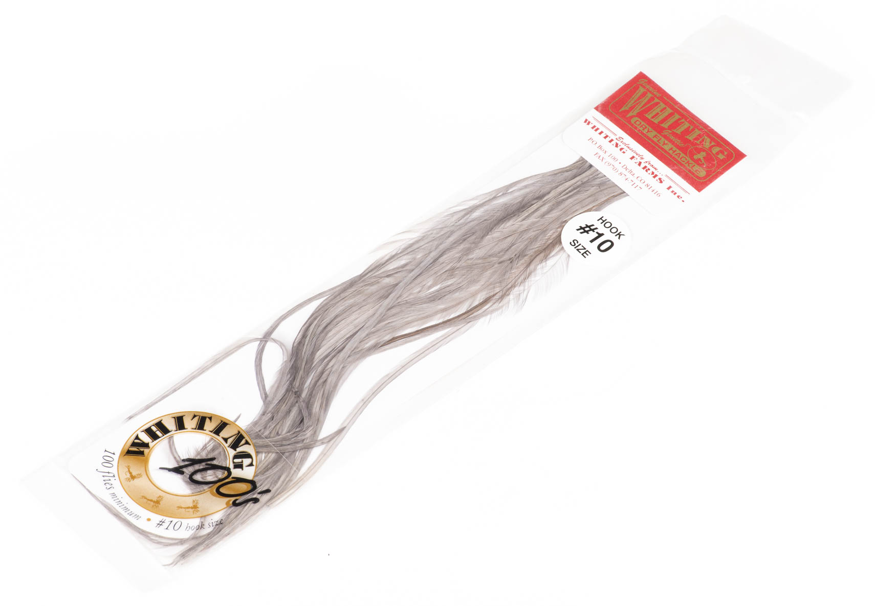 Whiting 100's Pack er en populær hacklepakke, der altid er udvalgt efter krogstørrelse med sadelfjer, der egner sig til tørfluer. Med pakkens hacklefjer binder du altid omkring 100 normale tørfluer, så du kan hurtigt og nemt lave tørfluer i en bestemt størrelse med disse pakker.