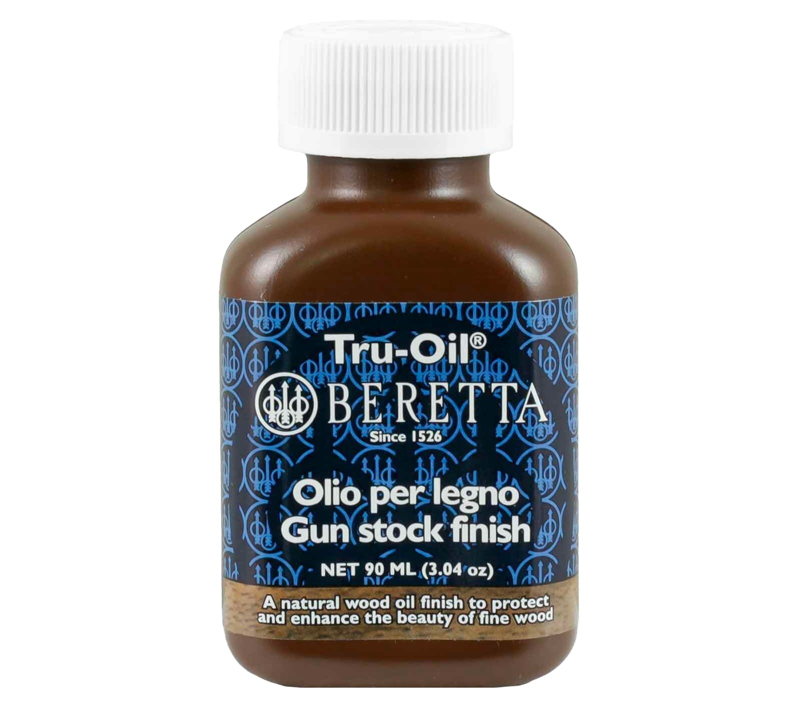 Beretta Tru-Oil skæfteolie fås i en praktisk 90 ml flaske med en sikker skruelukning. Denne olie er baseret på naturlige olier og forsegler alle porer ved at trænge dybt ind i træet, hvilket gør den til et fremragende plejeprodukt til våbenskæfter. Tru-Oil påføres jævnt og absorberes hurtigt uden at efterlade pletter. Efter behandlingen bliver skæftet mere modstandsdygtigt over for fugt og barske vejrforhold, og olien fremhæver desuden træets naturlige mønster.