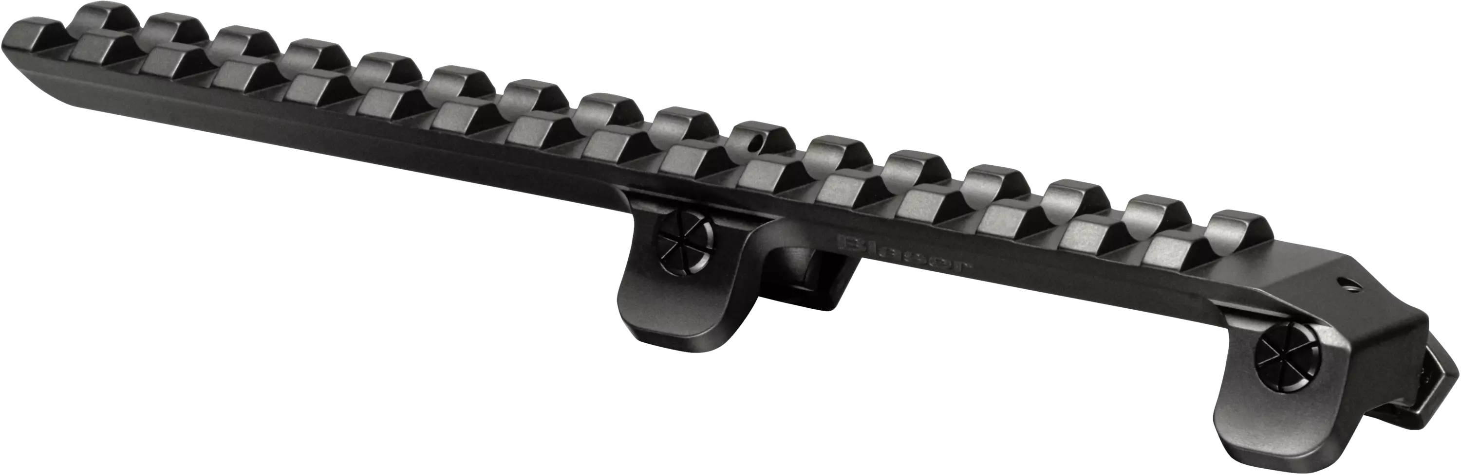 Bemærk! I modsætning til billedet har skinnen en fast skruefastgørelse og ikke de hurtigudløserlåse som vist på billedet. Sigte og sigteringe sælges separat, så det er kun skinnen, der er inkluderet.