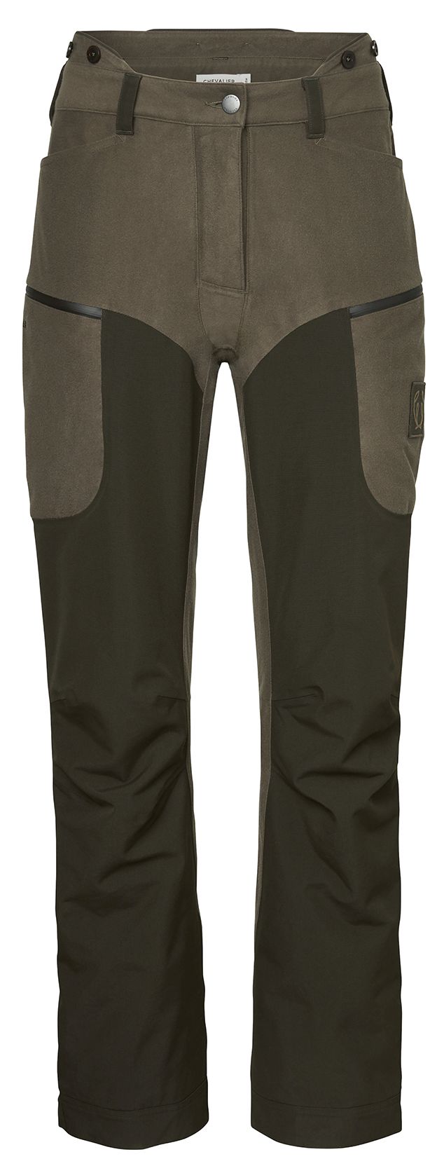 Chevalier Pointer Chevalite Pants 3.0 er lydløse og fleksible skalbukser til kvinder, lavet af børstet stretchmateriale. Bukserne er designet til jagt og udendørsaktiviteter. Konstruktionen er vand- og vindtæt takket være Chevalite-membranen og tapede sømme. Kontrastfarvede forstærkninger på forsiden af lårene og ved buksebenenes afslutning. Pointer 3.0-bukserne har en forhøjet talje, der går op bagpå og sikrer, at bukserne ikke afslører huden, når du sætter dig ned eller klatrer i udfordrende terræn. Buksebenene har lynlåse til ventilation. Taljen har både bæltestropper og knapper til seler. Pointer 3.0-bukserne har flere praktiske og velovervejede lommer, såsom fleeceforede håndlommer og rummelige lårlommer. Den højre lårlomme har en netforet mobillomme, og den venstre har en elastisk patronholder. Bukserne har en ergonomisk pasform, forformede knæ og justerbare knæ- og buksebenafslutninger. Indersiden af sømmen har en løkke, der kan fastgøre bukserne til skoene og forhindre buksebenene i at glide op. Hovedmaterialet og foringen er lavet af genanvendt polyester.