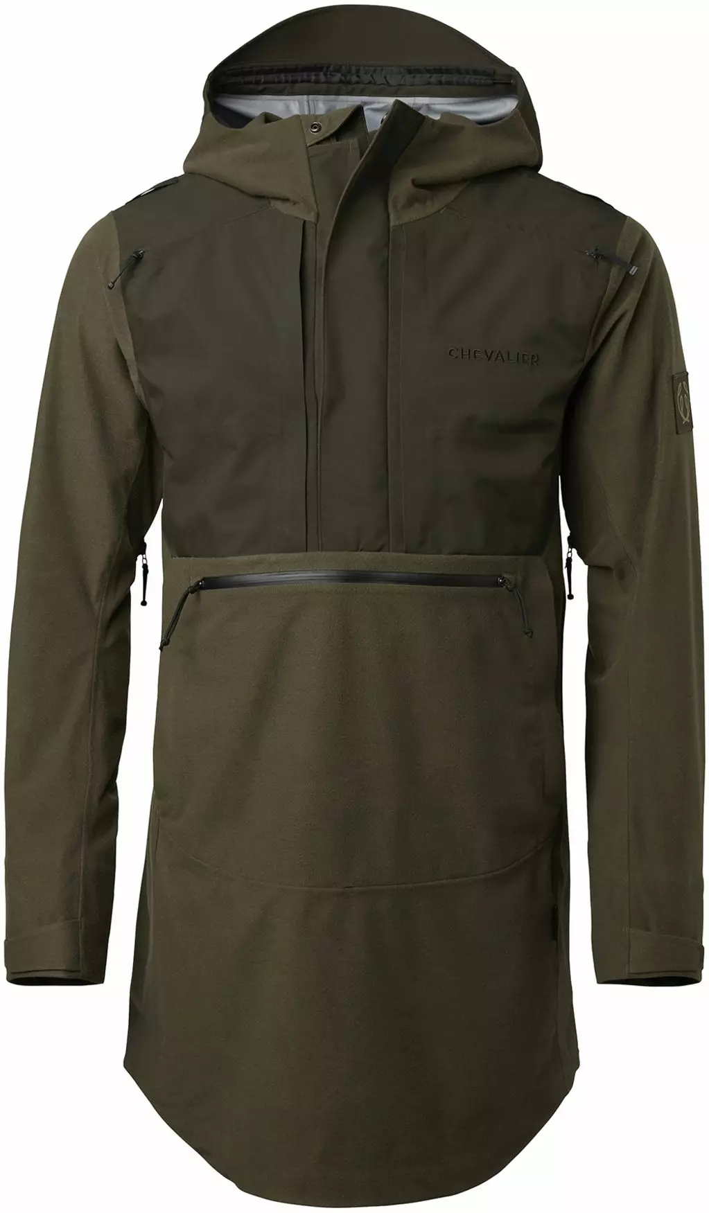 Chevalier Pointer Pro Anorak Men er en praktisk trelags anorak lavet af børstet og elastisk genanvendt polyester. Denne jagtanorak er vandtæt og vindtæt. Vandsøjle: 20.000 mm og åndbarhed: 20.000 g/m²/24h. Beklædningens konstruktion sammen med den vind- og vandtætte PFAS-fri Chevalite-membran og tapede sømme sikrer, at du forbliver tør i regnvejr. Materialets vandafvisning er også PFAS-fri. Kontraststoffet på skuldrene og brystet er særligt vandafvisende.