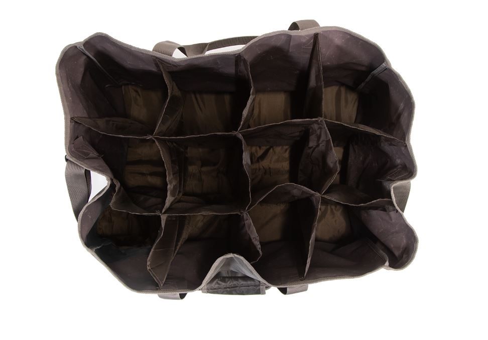 12-rums bæretaske til krage-, due- og andelokker. Materialet er meget slidstærkt, men stadig let. Skulderrem og bærehåndtag. Rumstørrelse: 18cm x 18cm x 43cm.