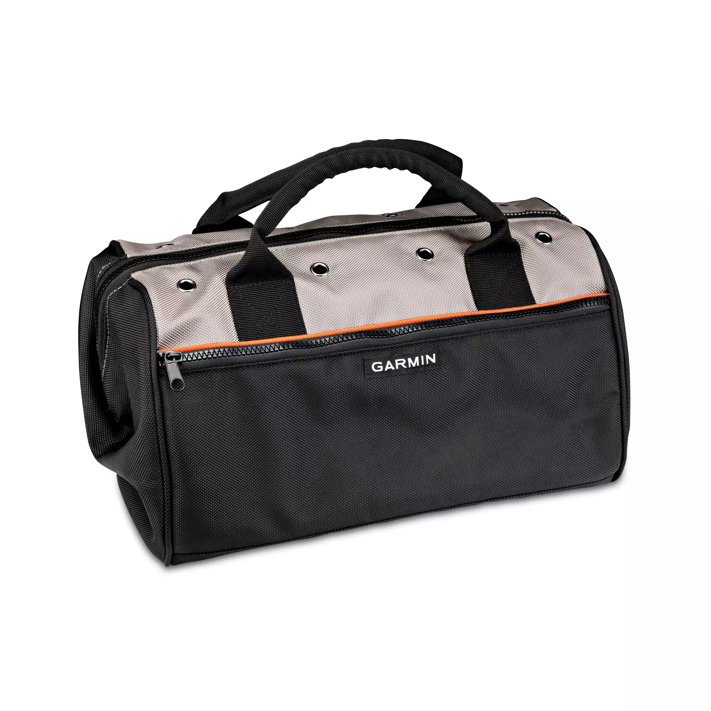 Garmin Field Bag holder alle dine sporings- og træningsenheder organiseret nemt og sikkert. Tasken, lavet af holdbart sort og gråt polyester, er udstyret med en lynlås og en lys orange stribe, der tilføjer stil og synlighed.
