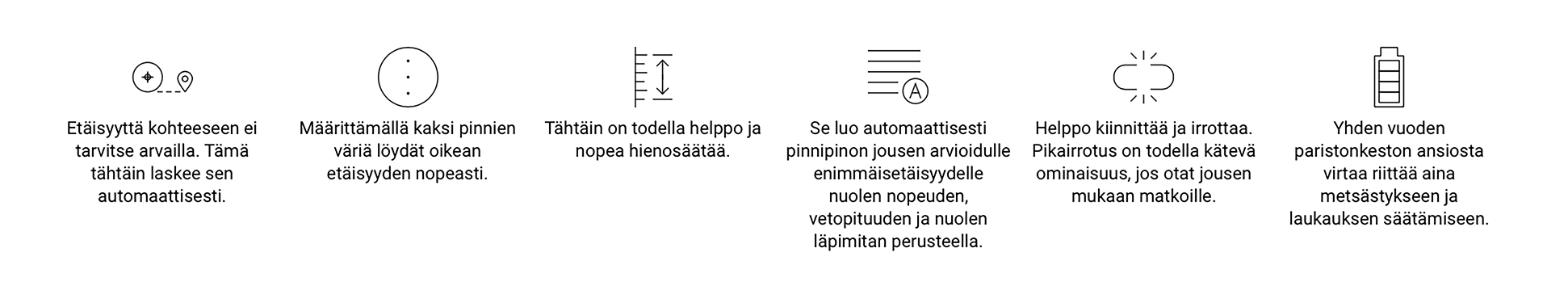 Du er straks klar til at bruge vores mest avancerede automatisk målende digitale buesigte. Det er hurtigt og nemt at konfigurere, måler afstand automatisk og giver feedback om sigtelinjen, så skuddet altid lykkes.