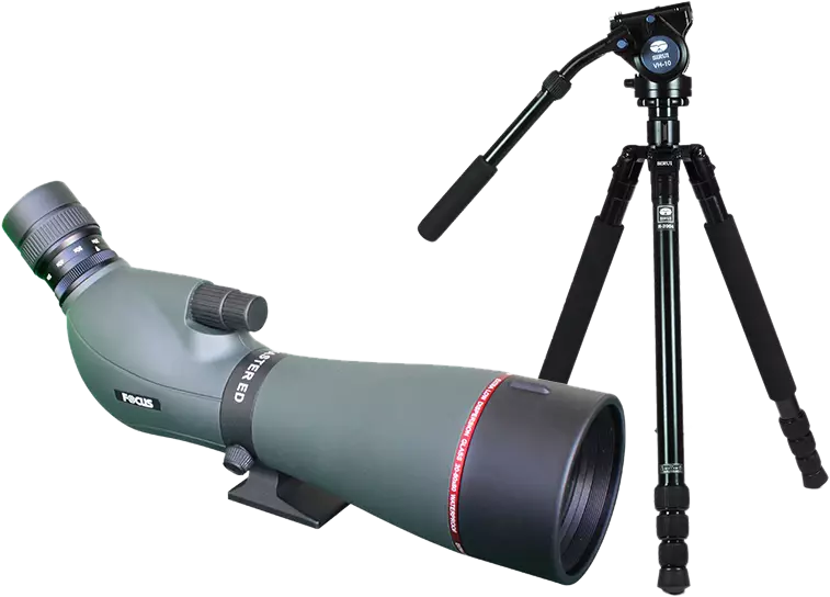 Focus Viewmaster ED leveres i en praktisk beskyttelsestaske, der beskytter kikkerten selv under brug. Pakken inkluderer også Sirui R-2004+VH10 stativet, som giver stabilitet og brugervenlighed.