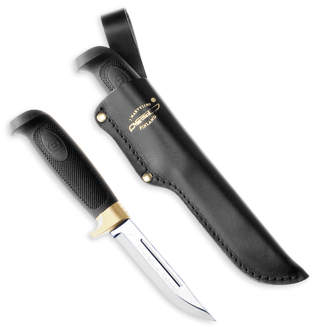 Marttiini Condor Classic 11cm -knivens blad er lavet af rustfrit kromstål og har en længde på 11 cm. Kniven leveres med en sort læderskede. For dem, der foretrækker knive med træhåndtag, findes der også en version med et håndtag af masurbirk (Luxus Classic).