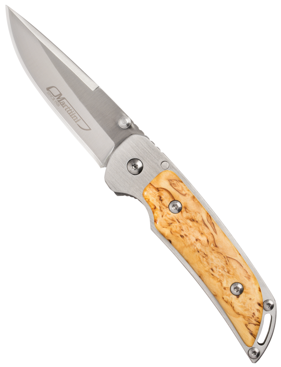 Marttiini MFK Visa Foldekniv er designet specielt til dem, der værdsætter funktionalitet og æstetik. Dens kompakte størrelse og materialer af høj kvalitet gør den til en pålidelig følgesvend både i skoven og i hverdagen. Masurbirkhåndtaget giver kniven et naturligt og elegant udseende, og bælteclipsen gør den nem at transportere.