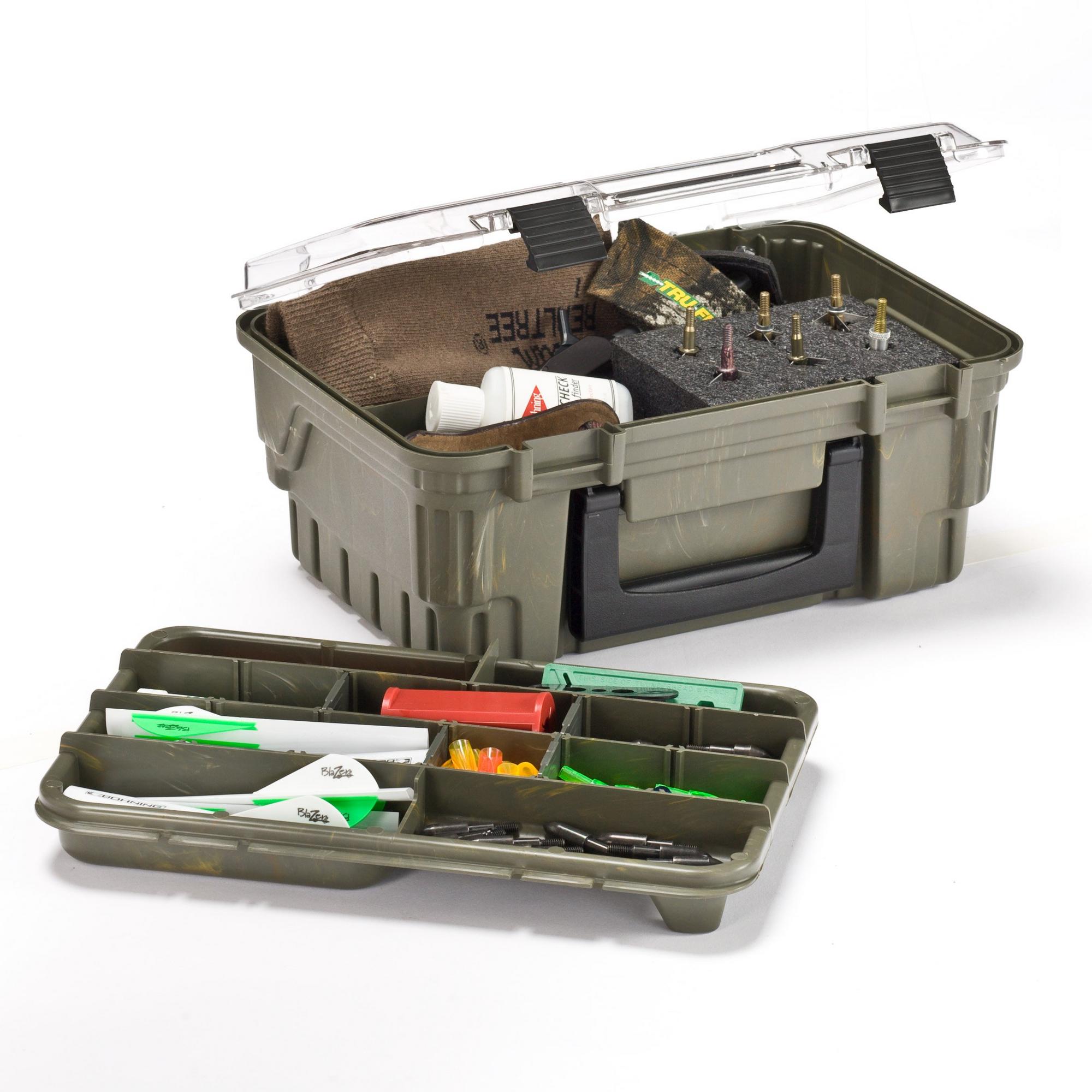 - Tilpasselig aftagelig bakke: Du kan nemt transportere og opbevare dit bueskydningsudstyr med Plano StowAway-tackle-systemet. De medfølgende rum skaber 8–16 sektioner.