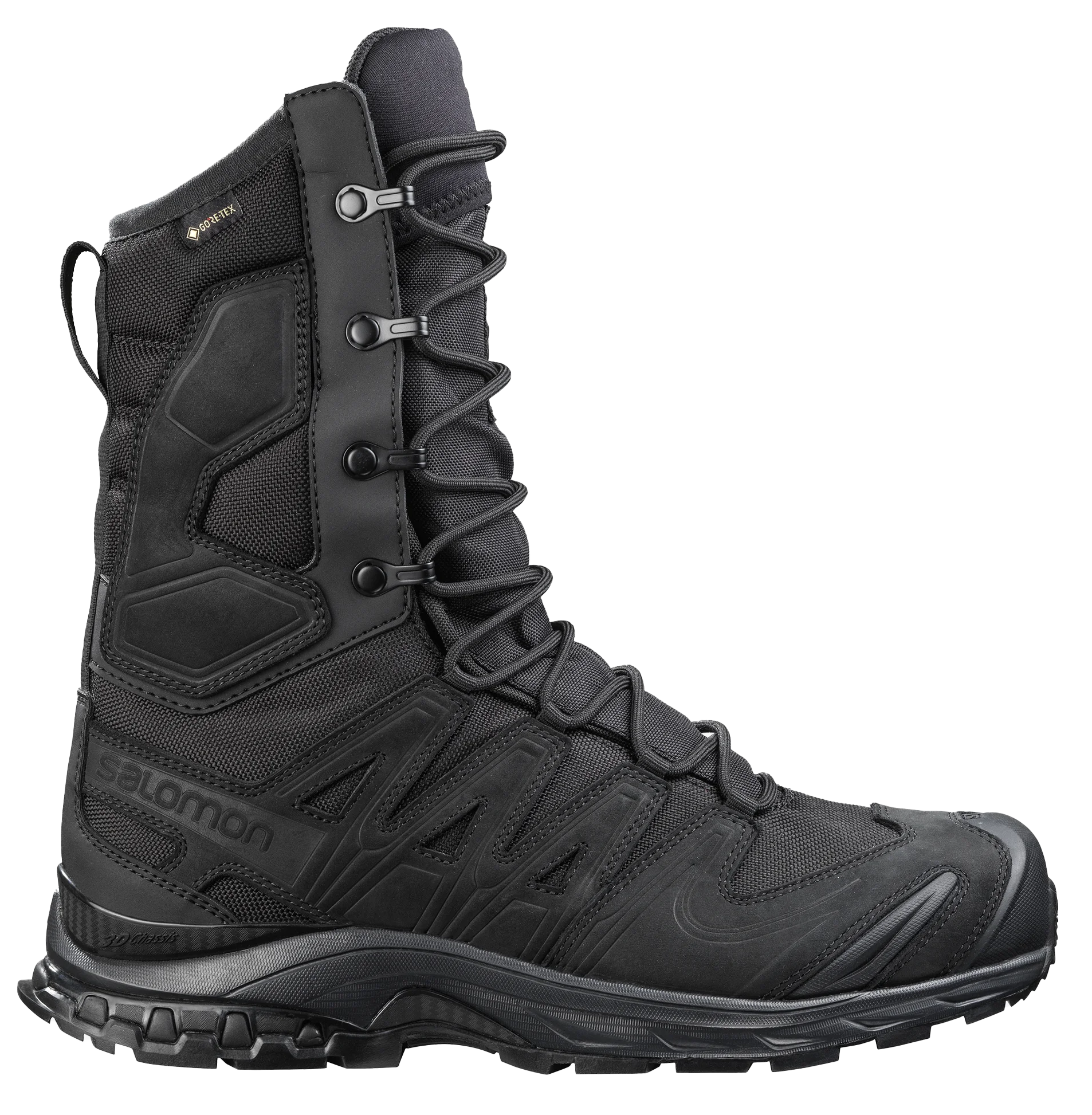 Salomon XA Forces 8 GTX støvle - denne Forces 8 GTX EN er den nyeste version i XA Forces serien. Denne højskaftede støvle kombinerer letheden og komforten fra en løbesko med beskyttelsesegenskaberne og stabiliteten fra en taktisk støvle. Støvlen opfylder ISO 20347:2012 standarden. Sålen er punkteringsbeskyttet, og sålens materiale er antistatisk og har godt greb på flere overflader. Det 8-tommer (20,32 cm) skaft følger brugerens bevægelser og giver beskyttelse til foden. Ekstra polstrede områder på støvlen inkluderer omkring anklen og skaftets øverste del. Hele overdelen består af et ikke-reflekterende materiale og et fugttransporterende net. Støvlens Gore-Tex membran gør støvlen til en fremragende partner i al slags vejr. 3D gummitåbeskyttelsen beskytter foden og tæerne mod stød og beskytter tåområdet mod slid. Den ekstra forstærkning på støvlens inderside giver ekstra beskyttelse og støtte ved klatring og rebaktiviteter. Den stabile og robuste mellemsålsstruktur, Contagrip MA ydersål, 3D chassis, punkteringsbeskyttet sål, antistatiske materialer samt Ortholite-indersål giver optimale egenskaber til alle forhold.