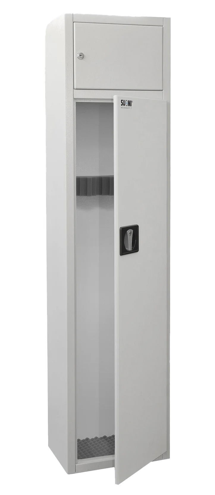 Suomi 5 våbenskab er egnet til opbevaring af op til fem våben i henhold til den finske våbenlov. Skabet har opbevaringsplads og pladser til fem lange våben. Materialet i skabet er 1,5 - 2 mm stålplade. Døren er udstyret med en sikkerhedslås og trevejs låsebolte. Bunden af våbenskabet er polstret, og bagvæggen har en robust våbenholder lavet af skum. Skabet har et separat aflåseligt øverste rum til opbevaring af ammunition og tilbehør. Det øverste rum kan også tilgås uden at åbne selve våbenrummet, hvilket gør det velegnet til opbevaring af andre værdigenstande i hjemmet. Skabets overflader er færdigbehandlet med hvid eller sort (RAL 9010 og RAL 9005) pulverlakering.