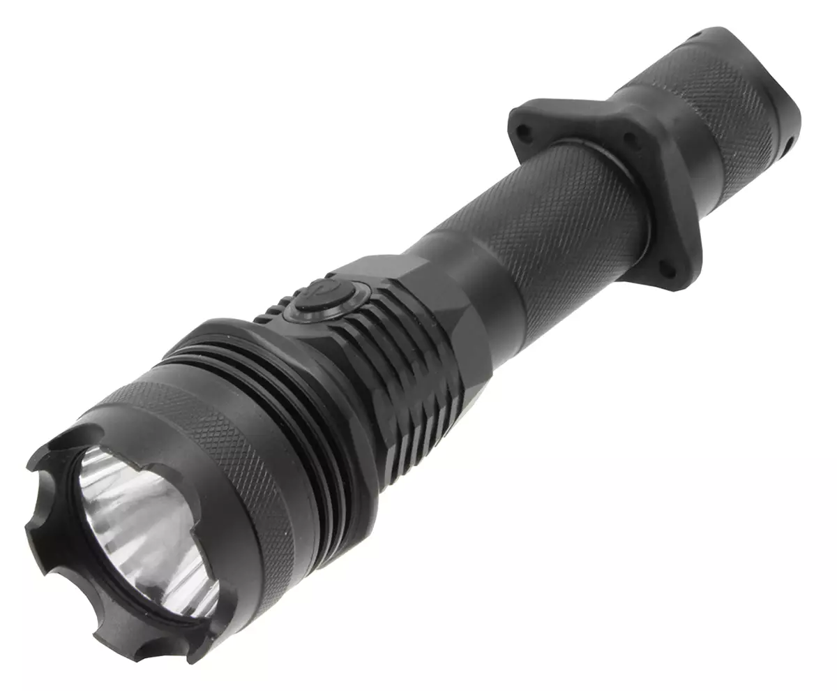 Lygten leveres med flere tilbehør, herunder 1" taktisk greb, 45 graders Picatinny-montage, endeknapkontakt, brugervejledning, 3 mm unbrakonøgle og CR123A litiumbatterier.