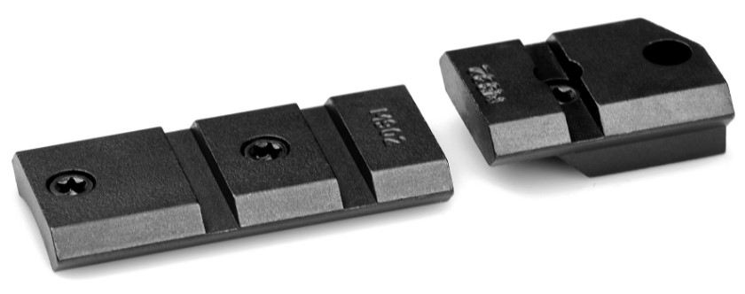 Adapteren fastgøres med skruer til riflens låsestykke og er kompatibel med både Picatinny- og Weaver-skinner. Dens holdbare stålkonstruktion sikrer pålidelig fastgørelse og lang levetid.