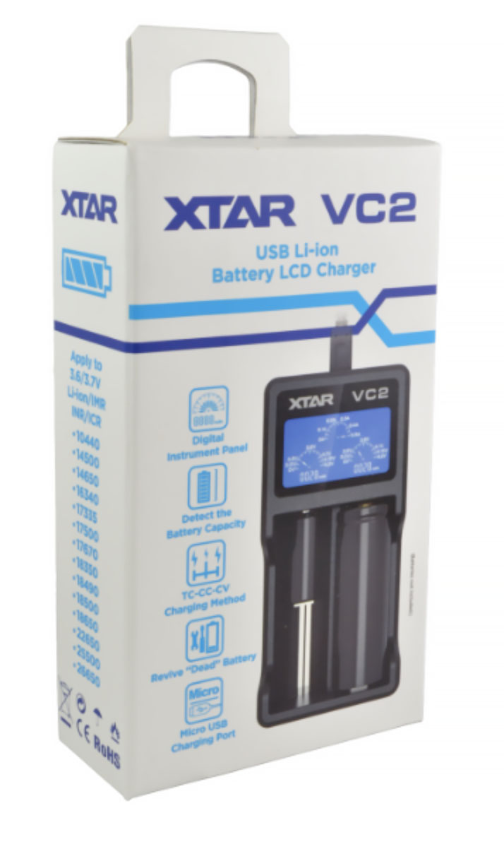 Xtar VC2 - er en fuldautomatisk Li-Ion oplader, hvor du på skærmen kan se den opladede kapacitet (mAH), opladningsstatus og spænding. Opladeren justerer automatisk opladningsstrømmen efter batteritypen. Velegnet til opladning af batterier til Ultracom Avius-, R10 og R10 Hybrid hundesporingsenheder. Tilslutning: USB