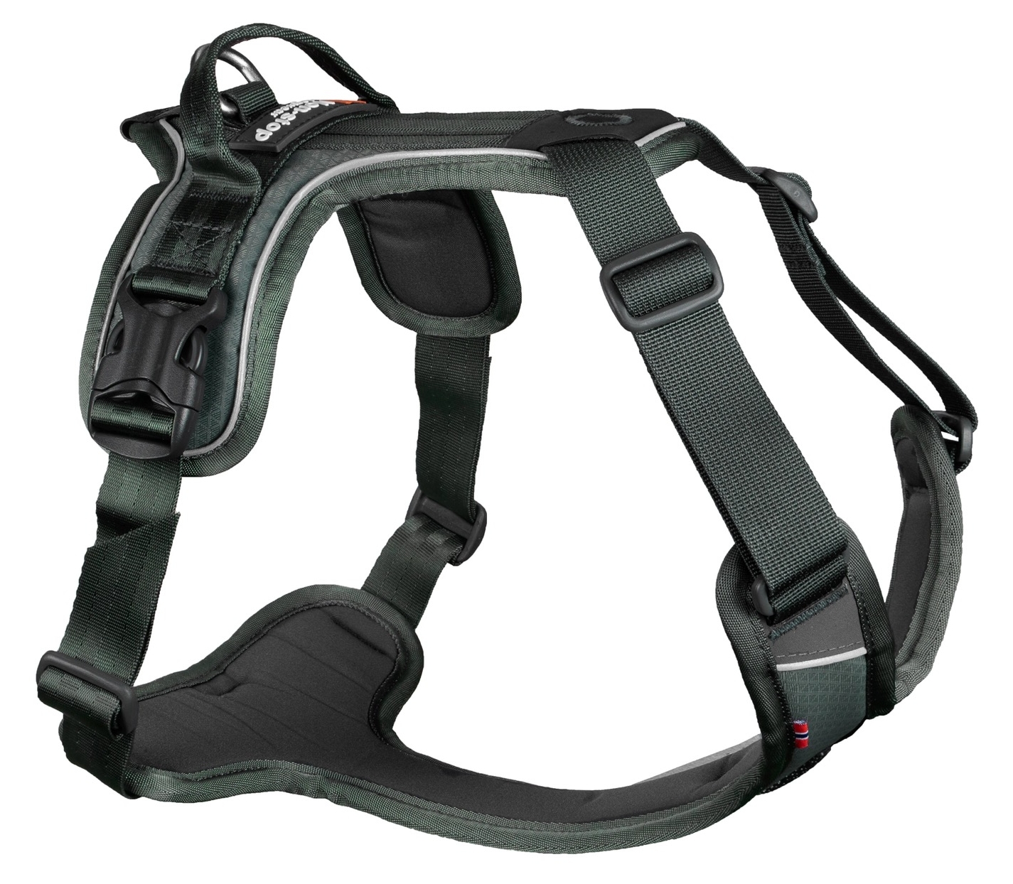 er en justerbar sele til hunde. Justeringer ved halsen og brystet. Håndtag og tre fastgørelsespunkter til snor gør selen meget alsidig.