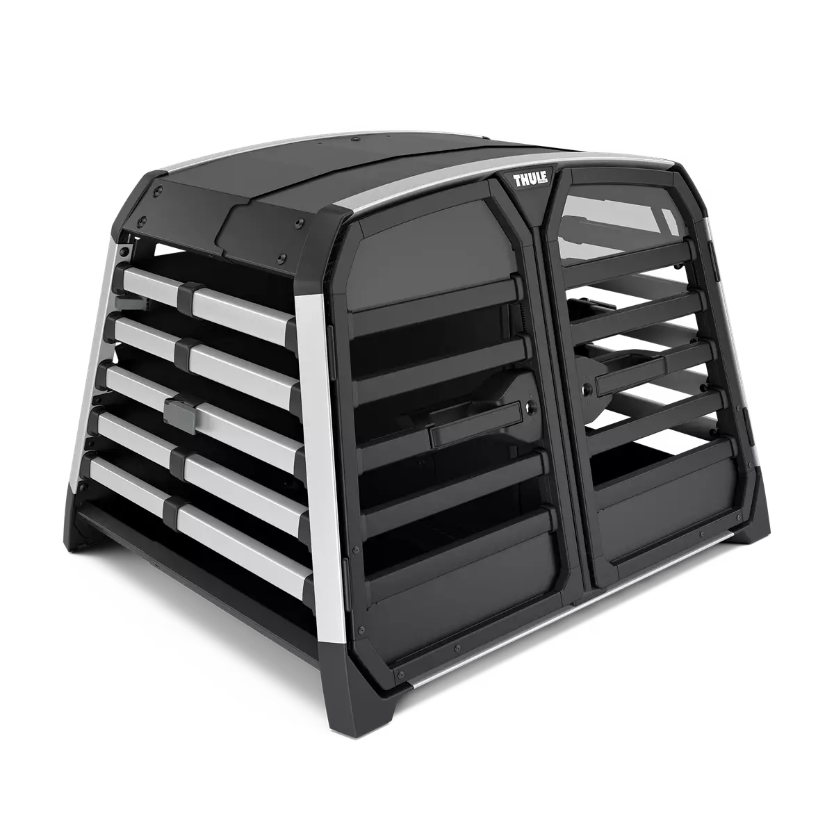 Thule Allax Double M Compact er fremstillet af materialer af høj kvalitet, og designet fokuserer på både sikkerhed og brugervenlighed. Burens gasdæmpede dør åbner og lukker blødt, og den indbyggede lås øger sikkerheden. Burens afrundede kanter og justerbare dybde sikrer en perfekt pasform i bilens bagagerum.