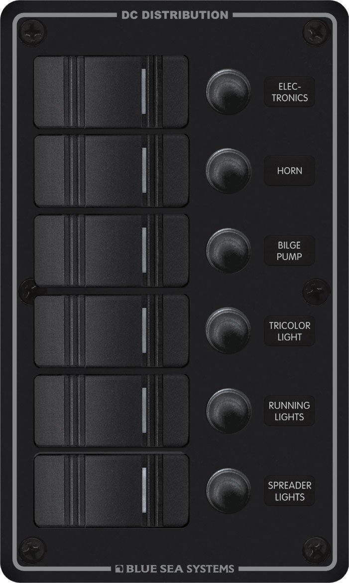 Blue Sea Water Resistant Circuit Breaker Panel 6 Position-Black info: