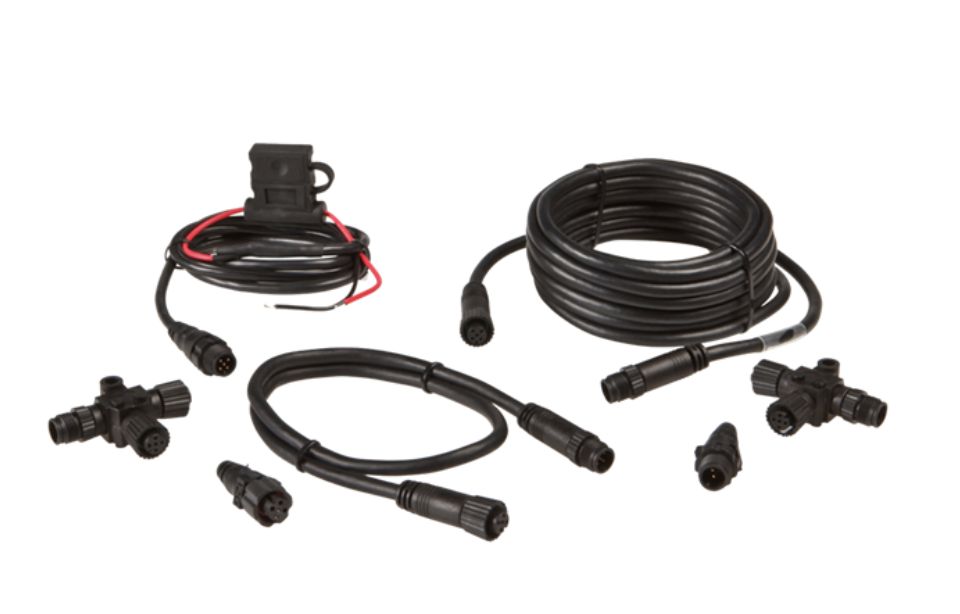 Pakken indeholder to T-stik; et til Lowrance-skærmen og et til strøm. I enderne af T-stikkene placeres "terminatorer", som lukker netværket. Der medfølger et 4,5 m kabel og et 0,6 m kabel samt en strømtilslutning. Når du ønsker at udvide netværket til en ny enhed, skal du blot anskaffe et ekstra T-stik og kabel. Netværket kan udvides så stort som nødvendigt og tilsluttes så mange enheder, som du har brug for.