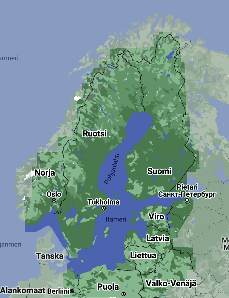 - Finske søer: Alle de største søer og vandområder samt et stort antal mindre søer