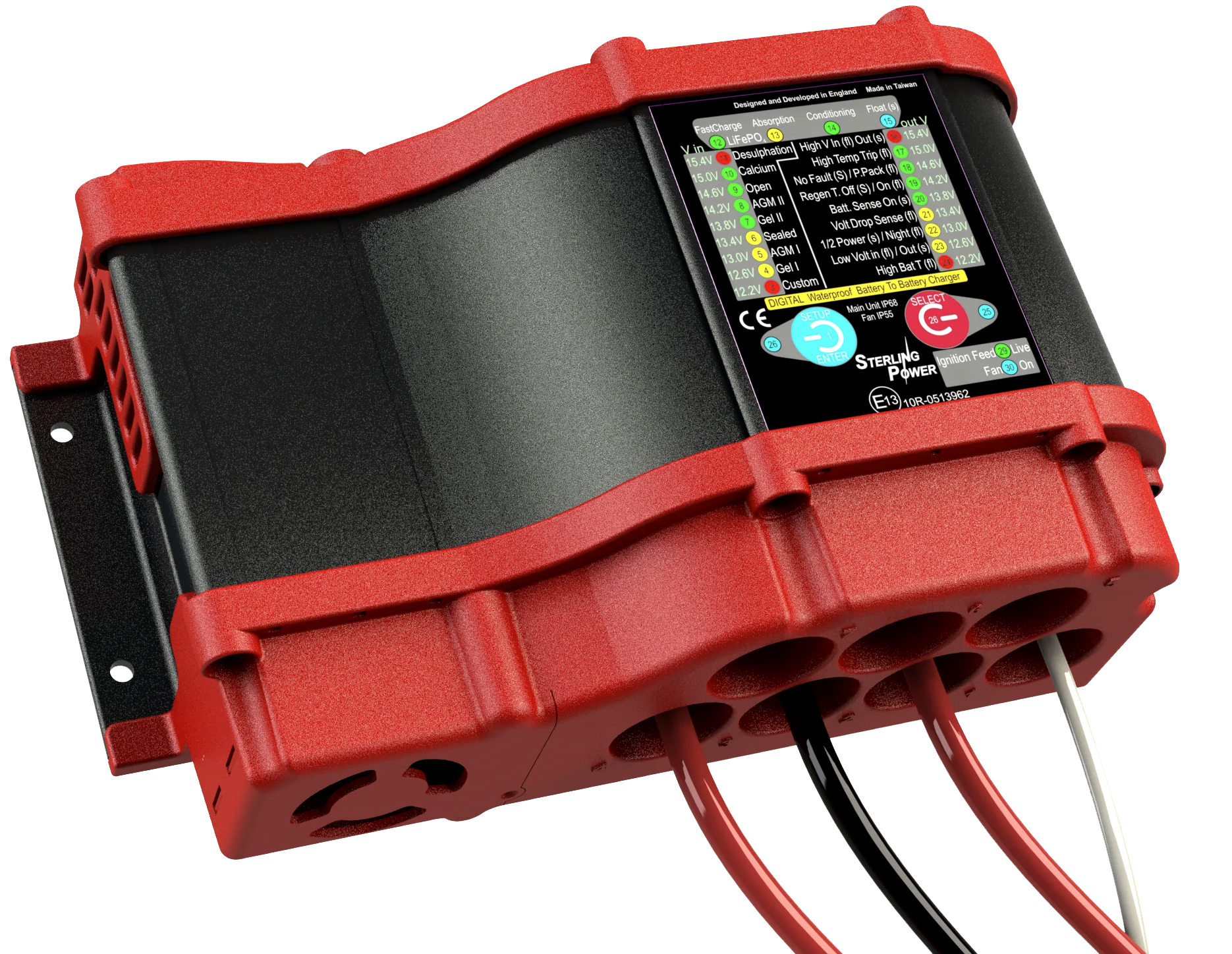 SterlingPower 12V 36V 30A Vandtæt Batteri til Batteri Oplader - aluminiumhus, en vandafvisende ventilator og vores mest effektive vandtætte DC/DC-kort til dato giver dig den bedste vandtætte service, vi kan tilbyde. Leveres forseglet med forudmonteret 1,5 m lang kabel og med forudinstallerede sikringer og sikringsholdere på kablerne. Sammen med alle funktionerne i Pro Batt Ultra-serien af batteri til batteri opladere.