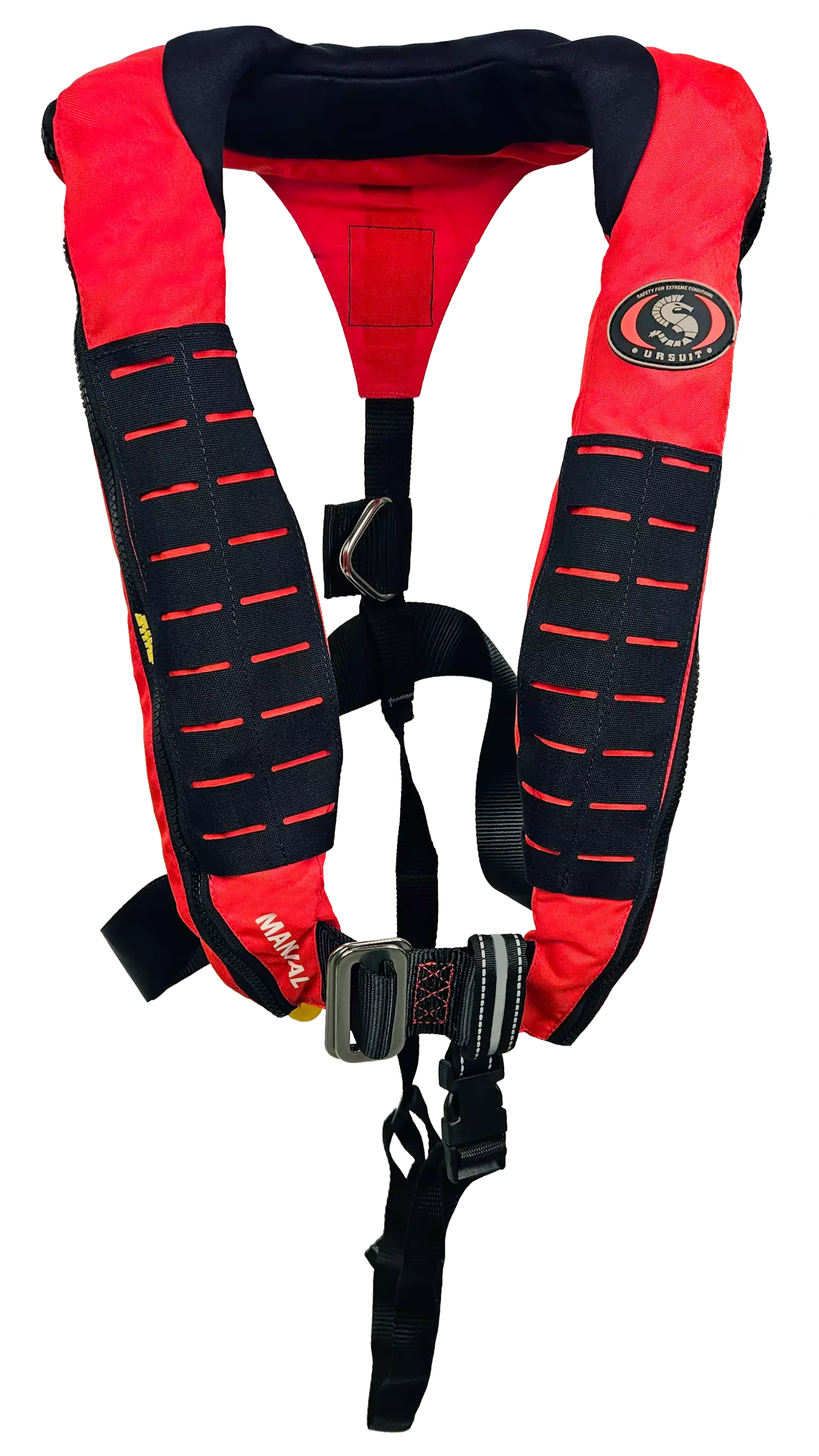 Ursuit Slimline Pro Manual oppustelig redningsvest er en let, behagelig manuel oppustelig redningsvest med en opdrift på 160N. Materialet er UV-beskyttet. Vesten har en YKK QuickBurst™ lynlås, der lukker skallen. (Lynlåsen er specielt designet til oppustelige redningsveste). Komforten øges af en neoprenkrave på vesten. På ryggen er der en solid trekantsrem, der forhindrer luft i at blive fanget under tøjet på ryggen.
