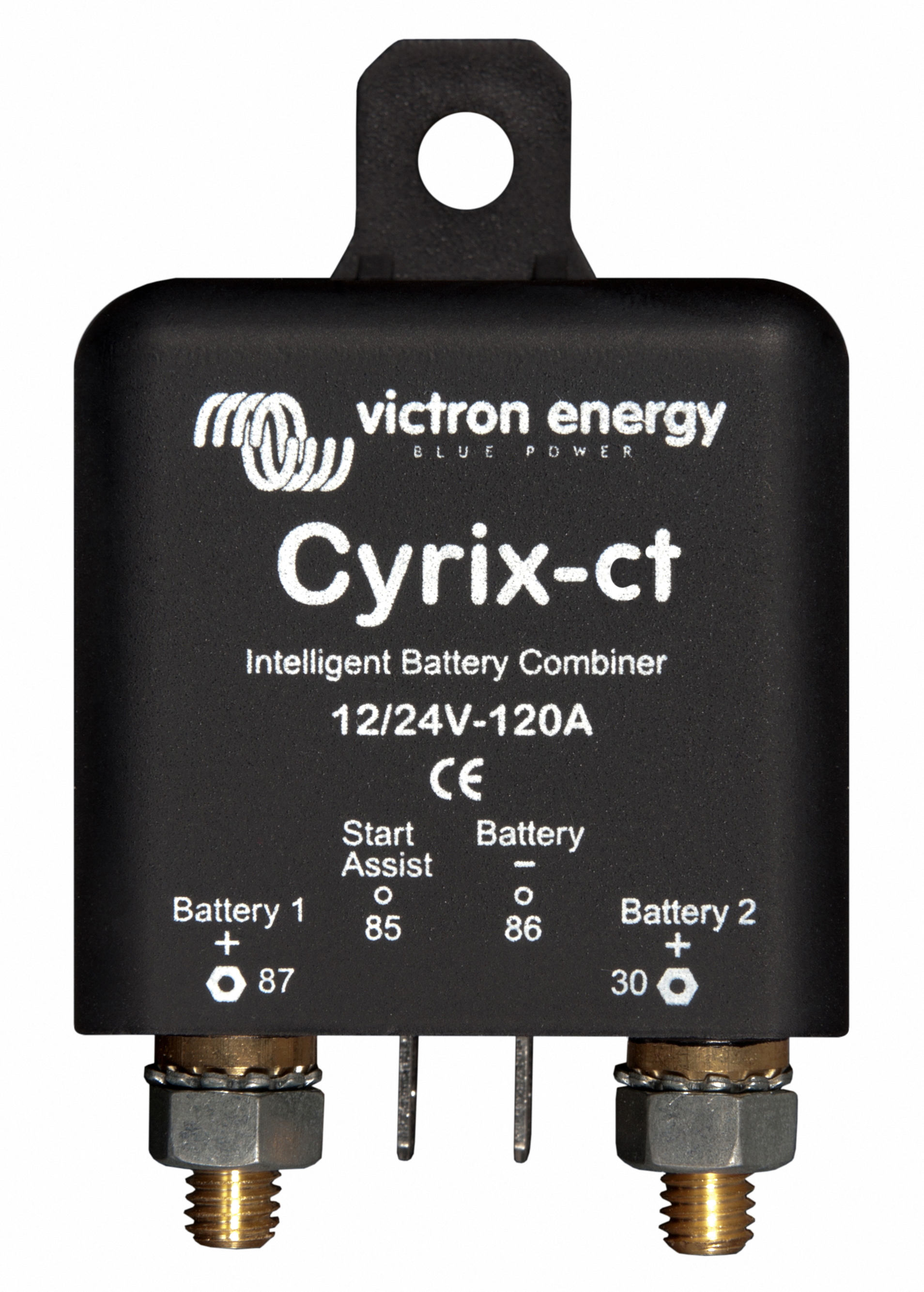 - Kan bruges i 12V-12V og 24V-24V systemer - Victron Cyrix fungerer ikke i 12V til 24V systemer. Hvis dit bovpropelbatteri er 24V, skal du altid bruge Victron Orion mellemladere (Victron Orion 12V 24V 15A)