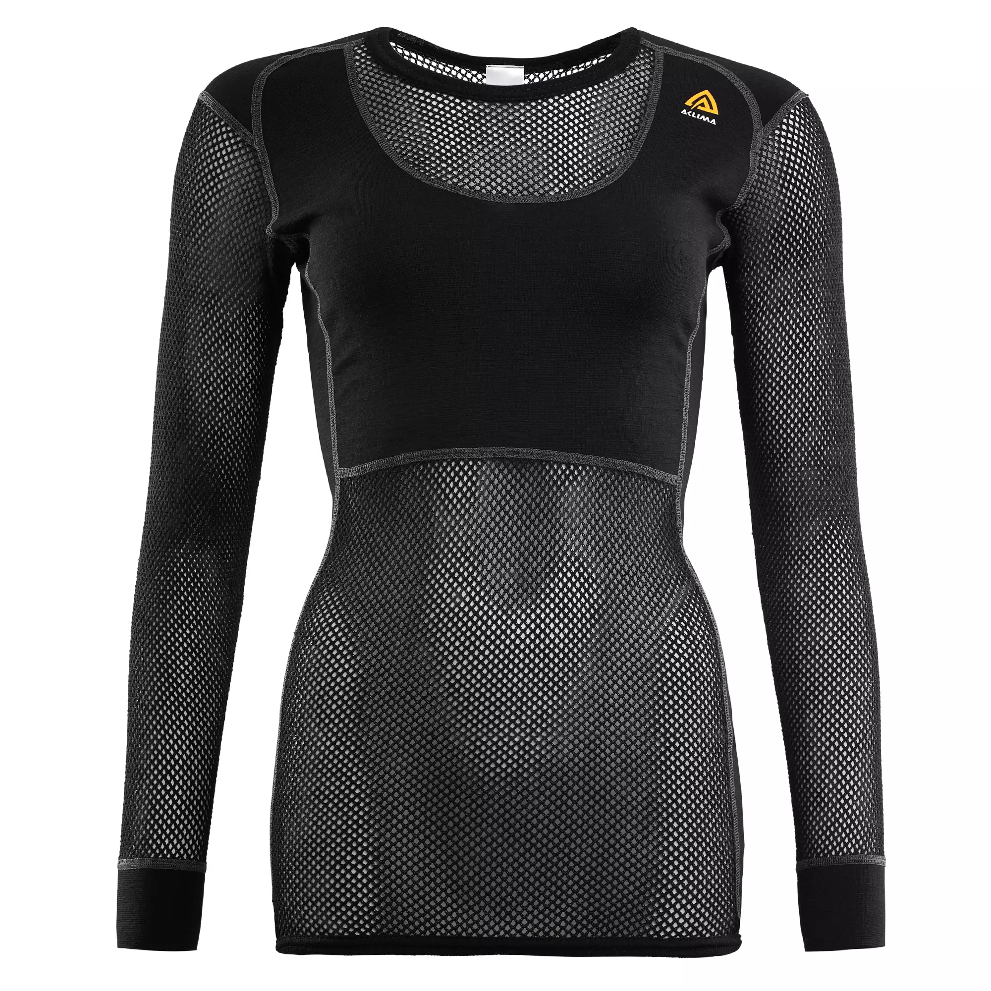 Aclima WoolNet W's Crewneck er en unik, langærmet netundertrøje til kvinder. Woolnet-strukturen, der bruger blød merinould, er altid passende varm og meget åndbar. Fiberen absorberer op til 30% fugt, før den føles våd. Skuldre og albuer er specielt forstærkede. Takket være Total Easy Care-behandlingen klør Woolnet ikke og krymper meget lidt.
