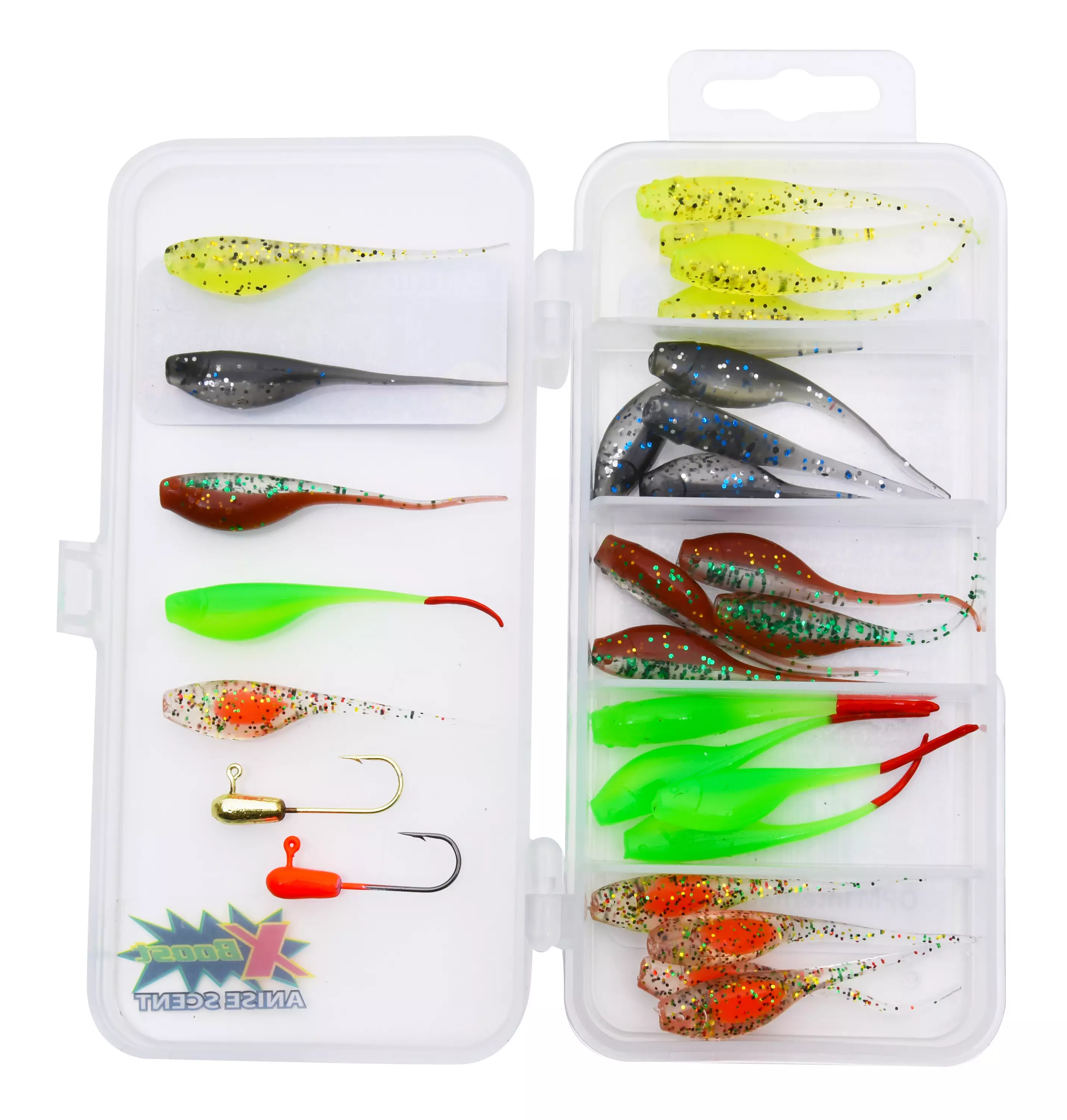 Jigene er lavet af blødt og kvalitetsmateriale, og de har en livlig svømmebevægelse samt færdiggjorte farver. Derudover er jigene tilsat X-Boost duft, som tiltrækker fisk.